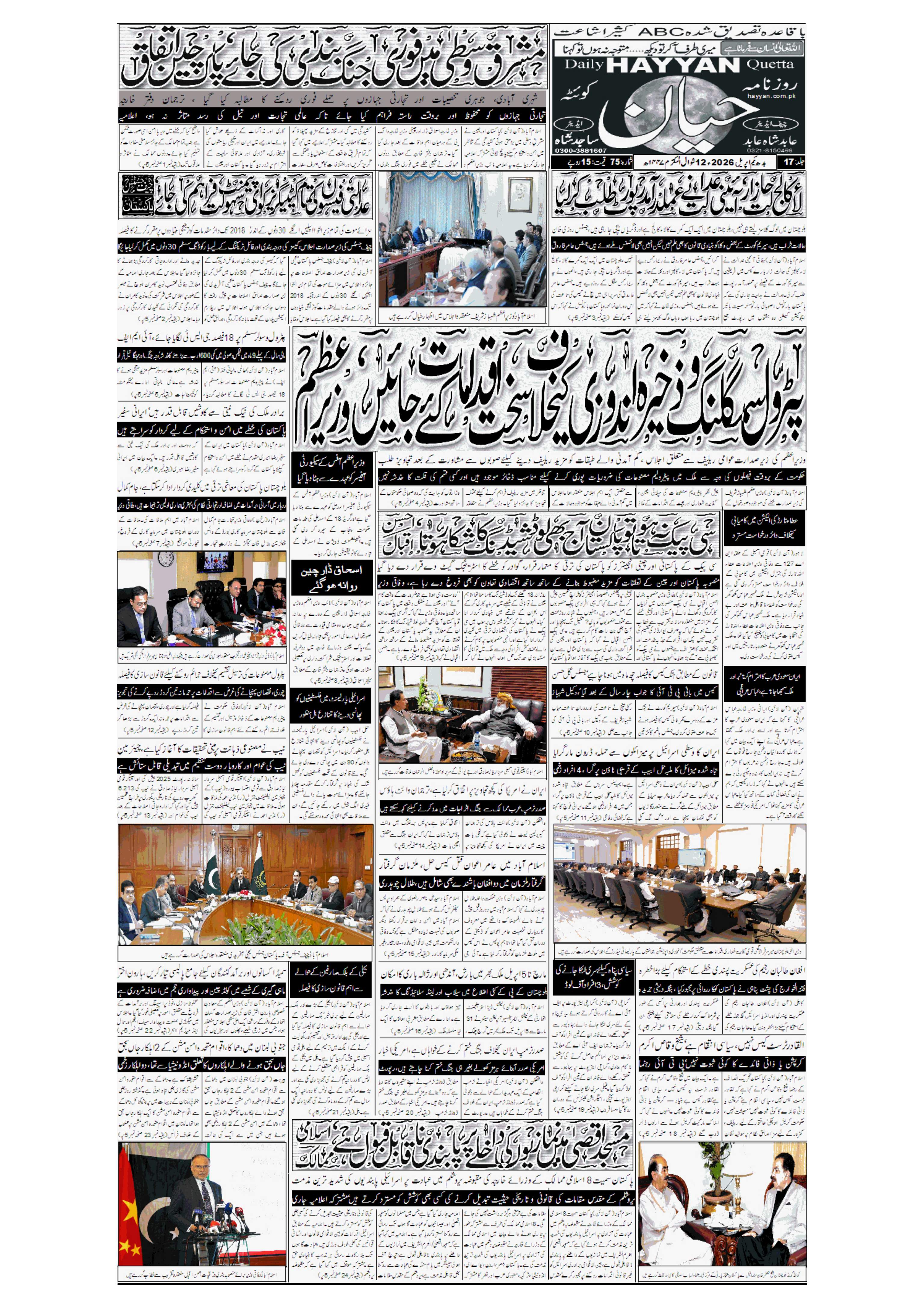 روزنامہ حیان مورخہ یکم اپریل 2026