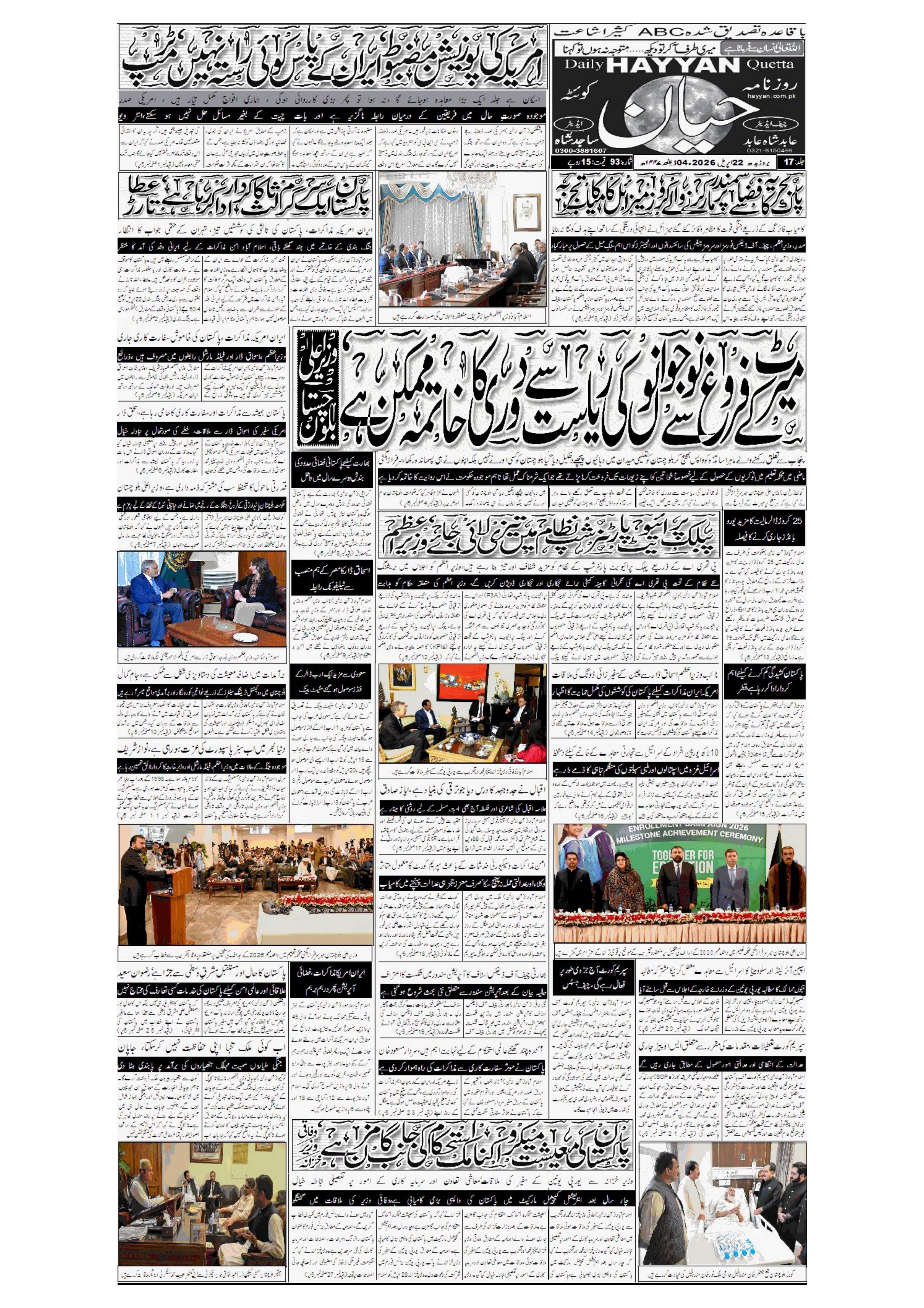 روزنامہ حیان مورخہ 22 اپریل 2026