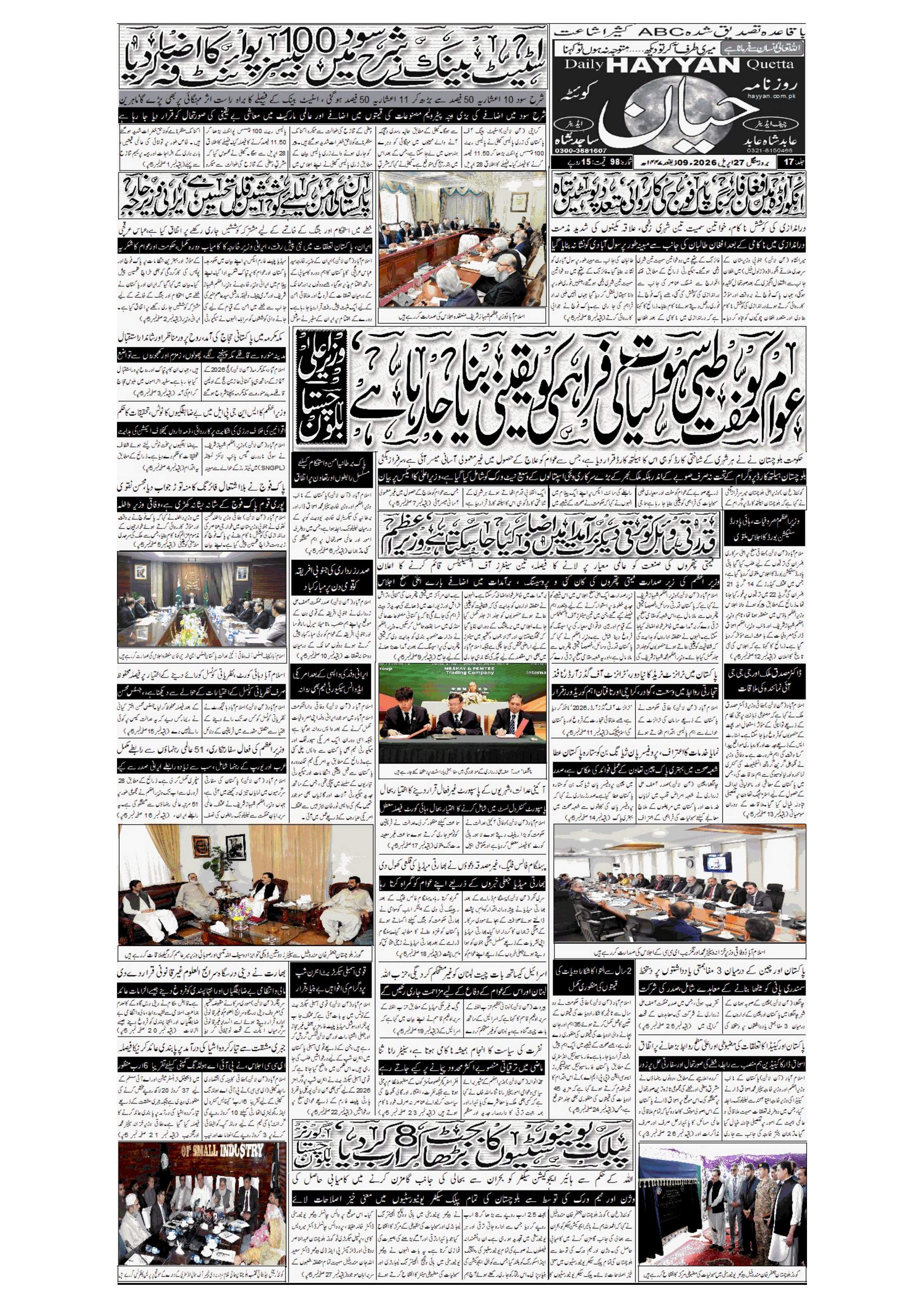 روزنامہ حیان مورخہ 27 اپریل 2026